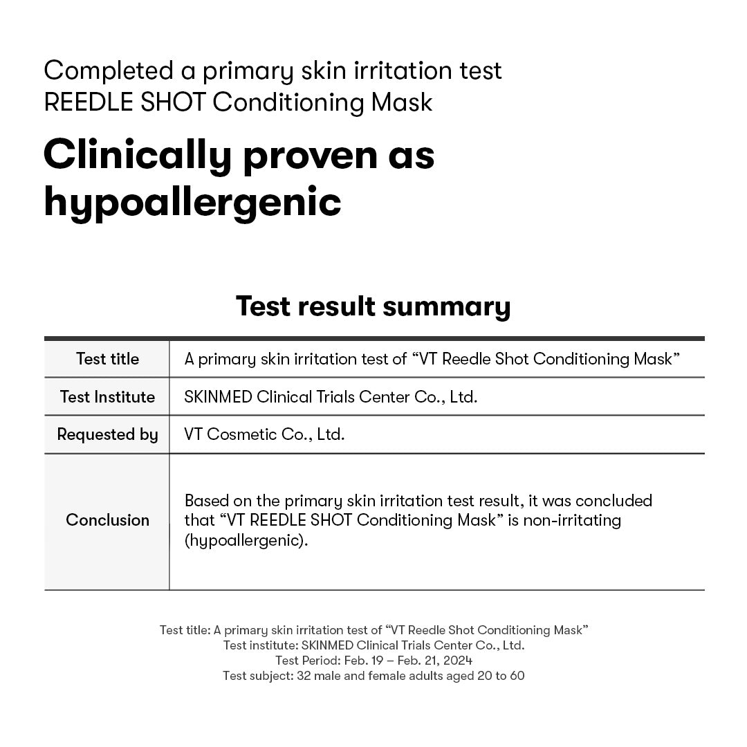 The VT Cosmetics Reedle Shot 300 2-Step Mask combines micro-stimulation care with deep soothing hydration to refine pores, smooth texture, and strengthen the skin barrier in a single treatment. Step 1 uses Reedle Shot 300 to boost absorption and improve skin renewal, while Step 2 delivers intensive calming and moisture with a vegan conditioning sheet mask.