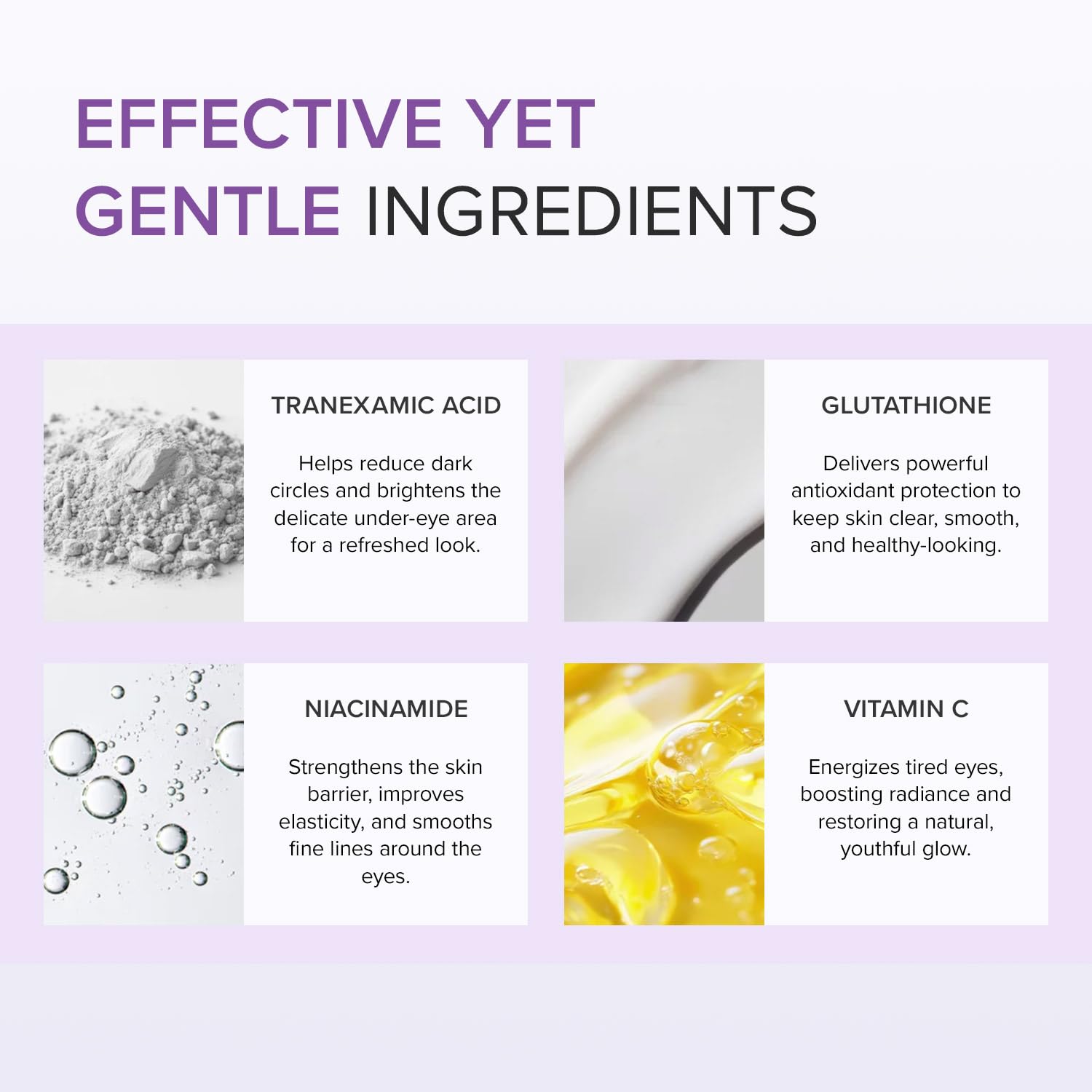 Dark circles • dullness • uneven tone • tired under-eyes • puffiness
